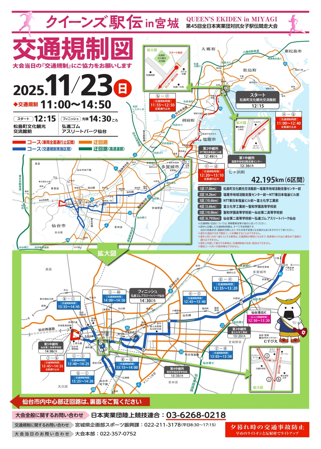 なお、駅伝開催に伴い、当日松島センチュリーホテルに通じる国道45号線の交通規制がございます。